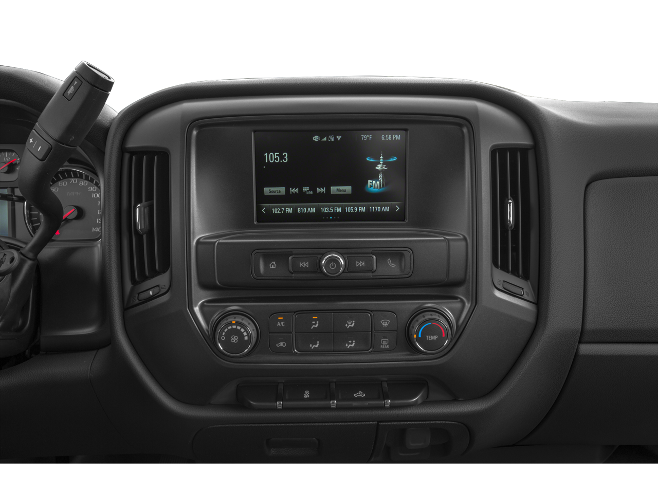 - Audio system, Chevrolet Infotainment System with 7" diagonal color touch-screen, AM/FM stereo with seek-and-scan and digital clock, includes Bluetooth streaming audio for music and select phones.